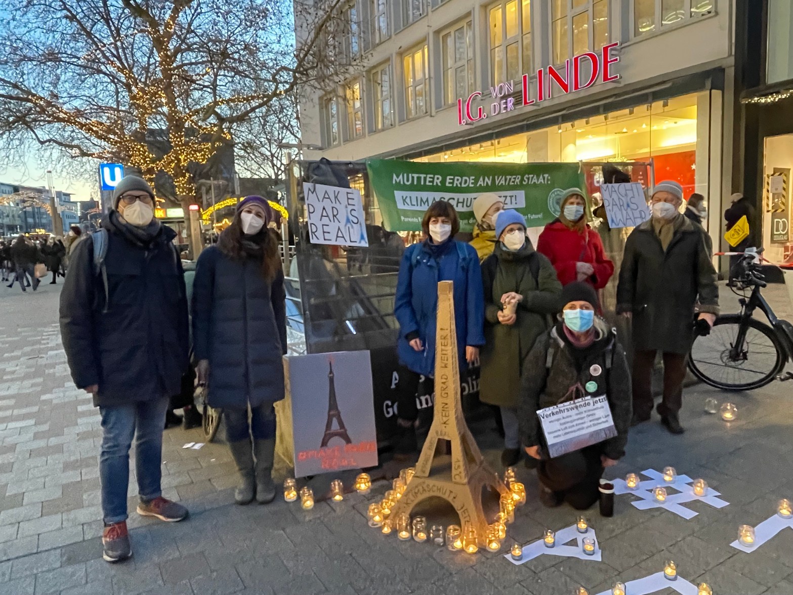 Das alte Jahr geht, 2022 kommt. Was was nehmen wir mit ins neue Jahr? Was sind unsere Hoffnungen und Ziele? Unsere letzte Aktion in 2021 zeigt mit Sicherheit am besten, wo wir weitermachen werden. Am 11.12.2021 waren wir zusammen mit den Parents For Future Hannover in der Innenstadt Hannovers und haben im Zuge des #Eiffelturmtages an das Paris-Abkommen erinnert. Noch immer nicht reichen die Maßnahmen der Regierung aus, um das Temperaturniveau der Erde unter dem wichtigen Limit von 1,5°C zu halten. Deshalb haben wir mit dieser Aktion unsere Bundestagsabgeordneten an ihre Verantwortung